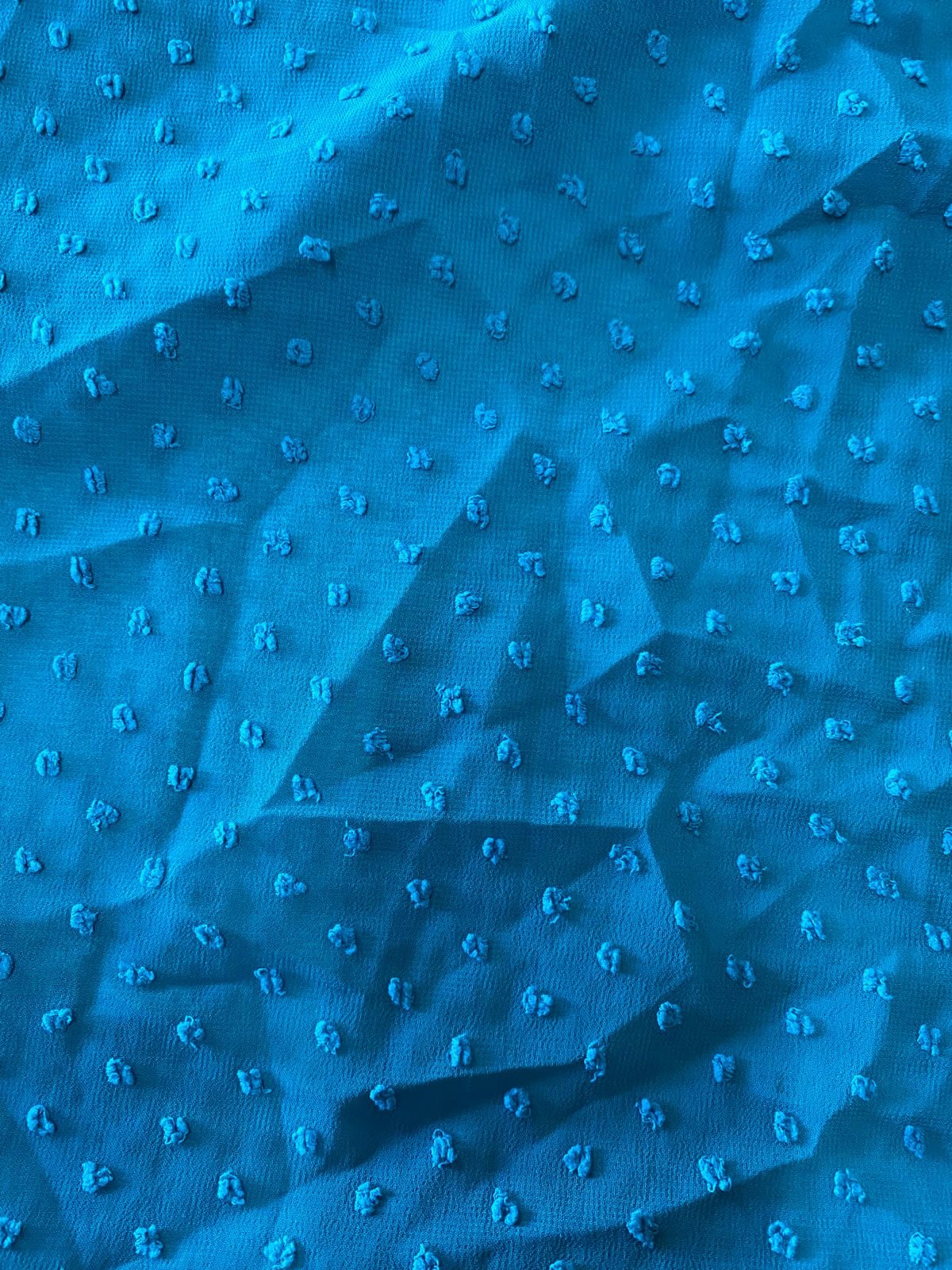Camisa em chiffon poa, com gola padre e babado frontal.